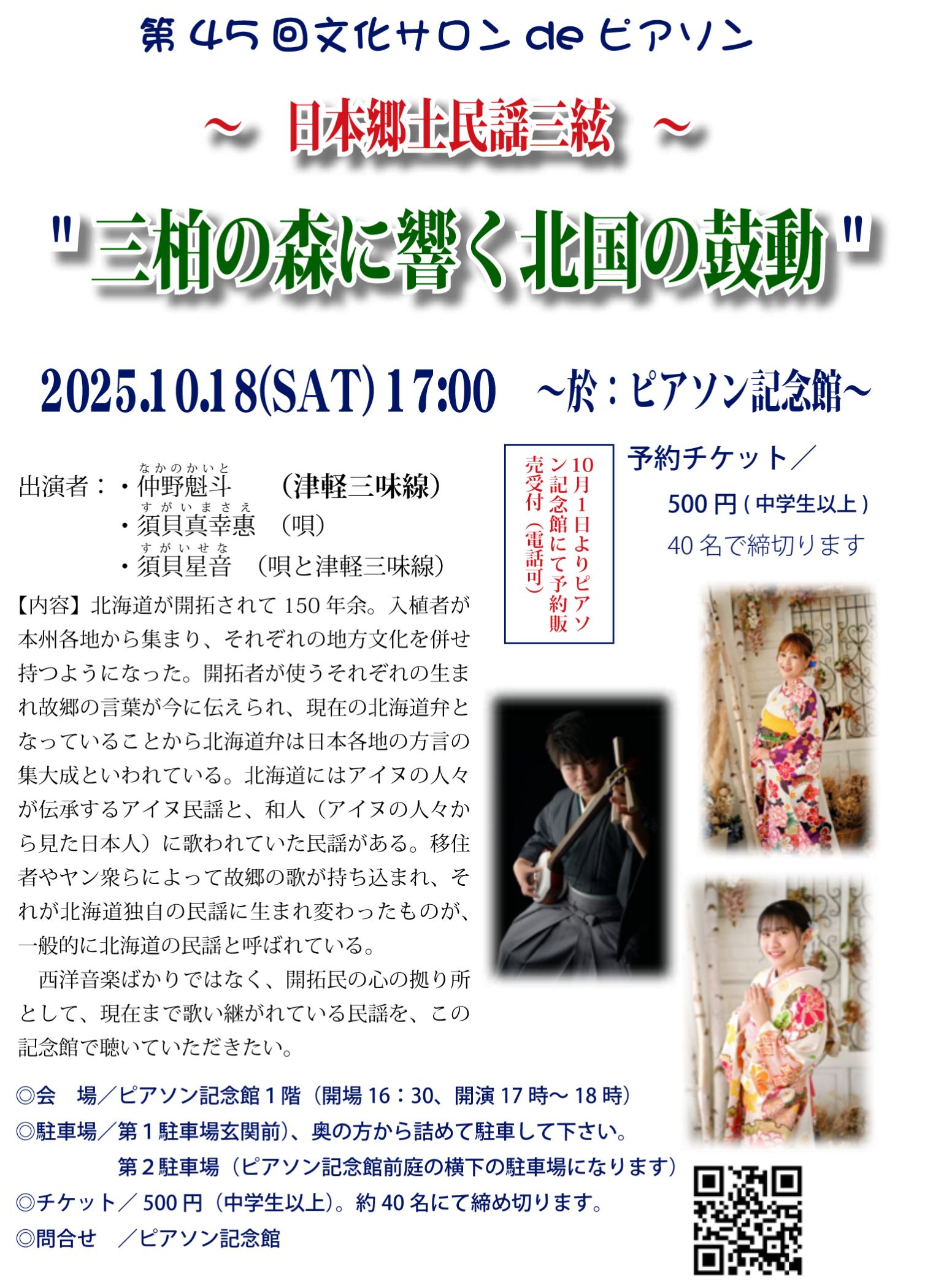 第45回文化サロンdeピアソン早めの申し込みを! 詳しくは 行事案内
